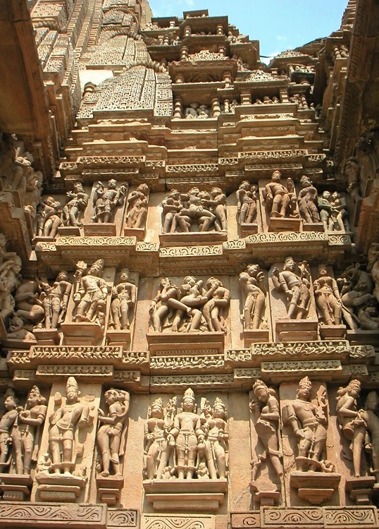 India, Travel Adventure Asia Temple in Khajuraho, Madhya Pradesh, India October 12, 2021 / One of the temples of the Khajuraho Group of Monuments. A group of Hindu and Jain temples in Khajuraho, Madhya Pradesh, India. This temple complex is UNESCO World Heritage Site and famous for its erotic sculptures.